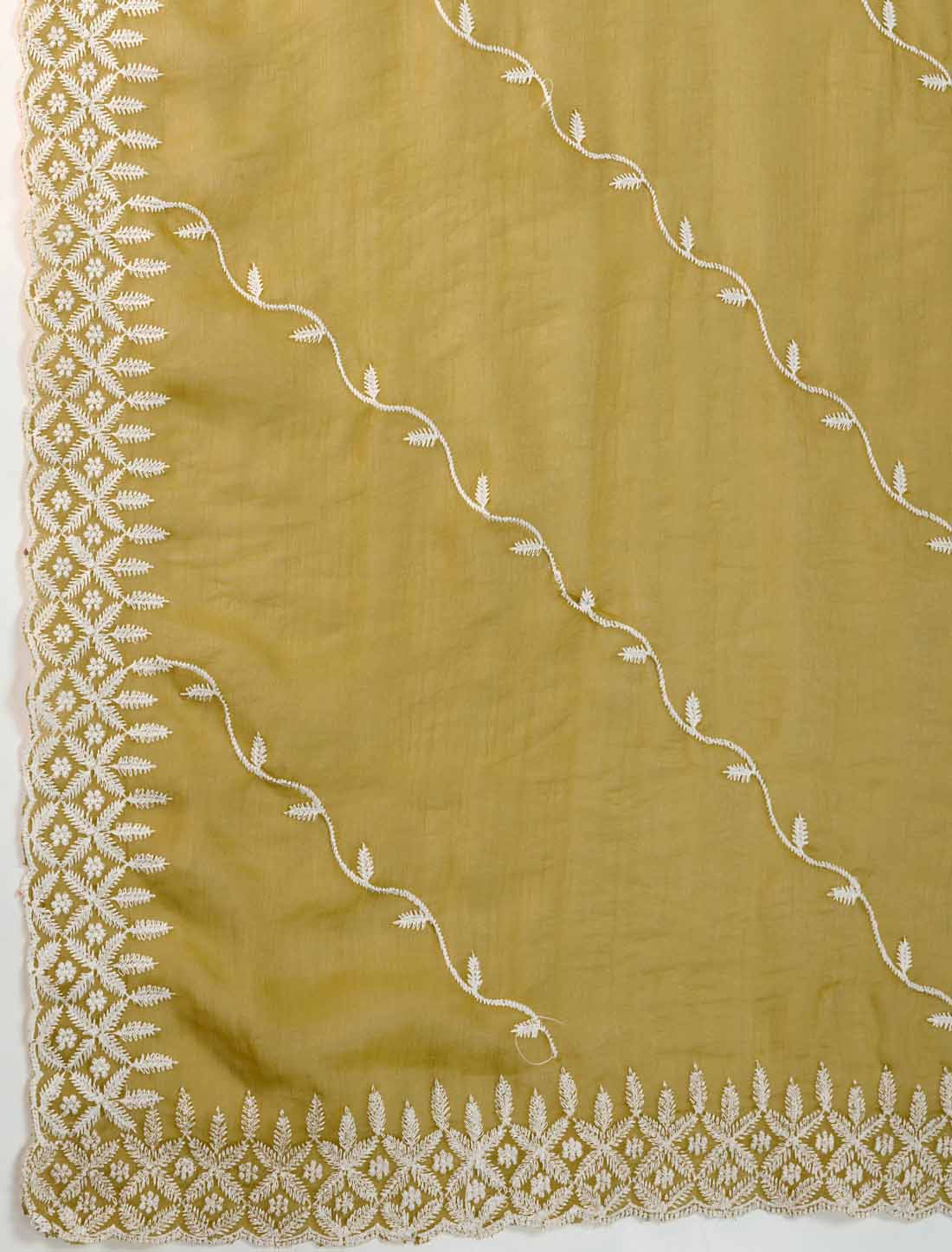 - Work: Tensile White thread & sequins embroidery | C Pallu | Leheriya Pattern Embroidery throughout the Saree